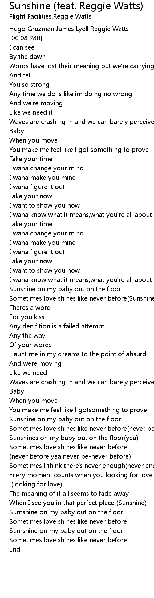 | [01:17.100] | Sometimes love shines like never before Sunshine |