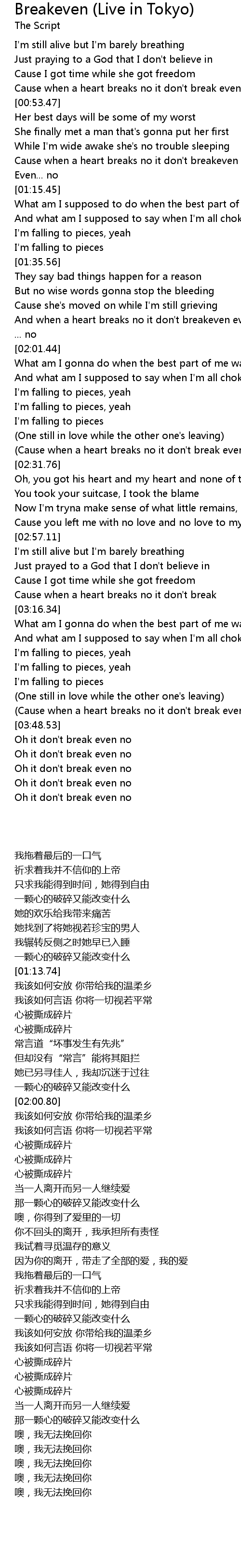 (Cause when a heart breaks no it don't break even) |