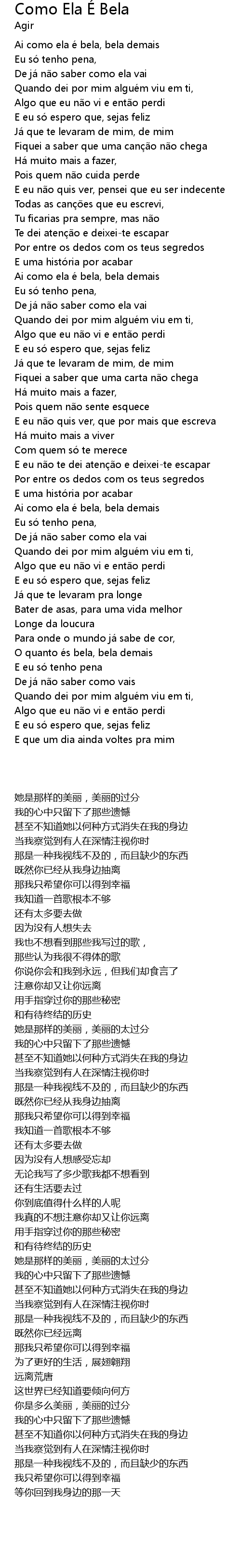 | [02:38.120] | Ai como ela é bela, bela demais |