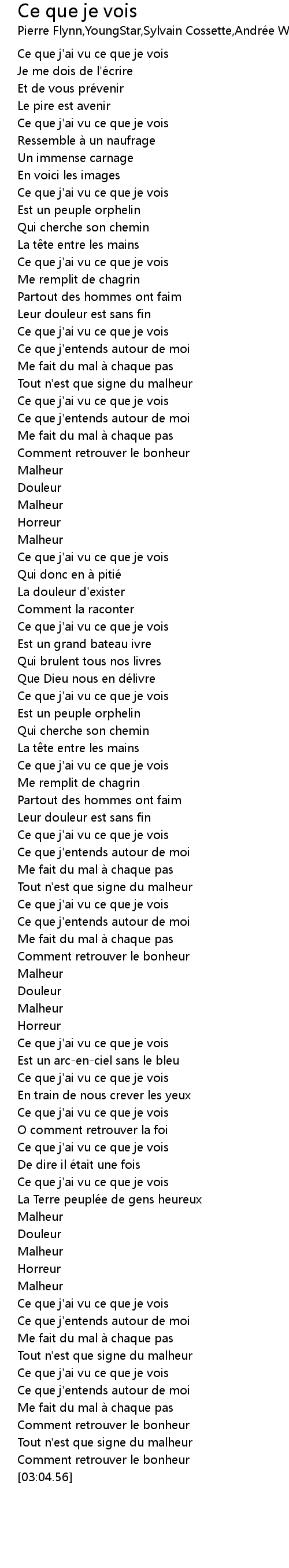 | [01:41.50] | Ce que j'ai vu ce que je vois |