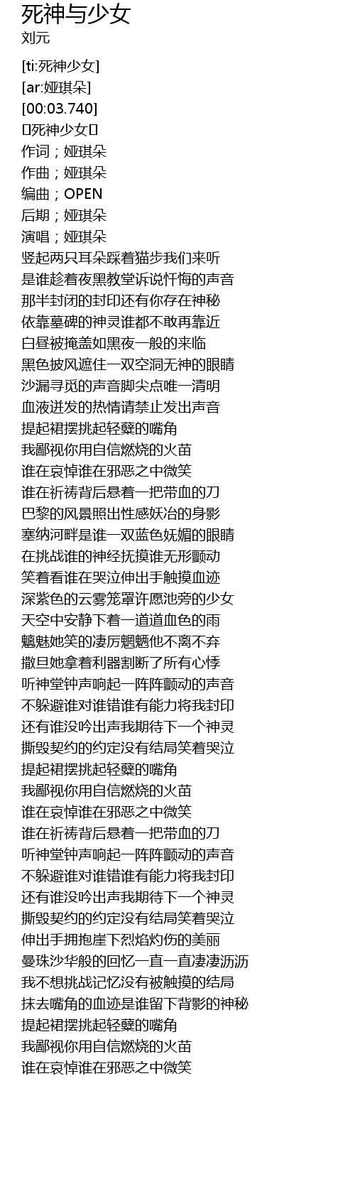 | [00:17.50] | yǎn chàng yà qí duǒ |