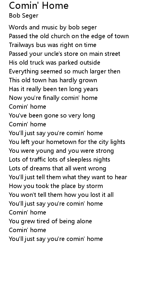 Words and music by bob seger |