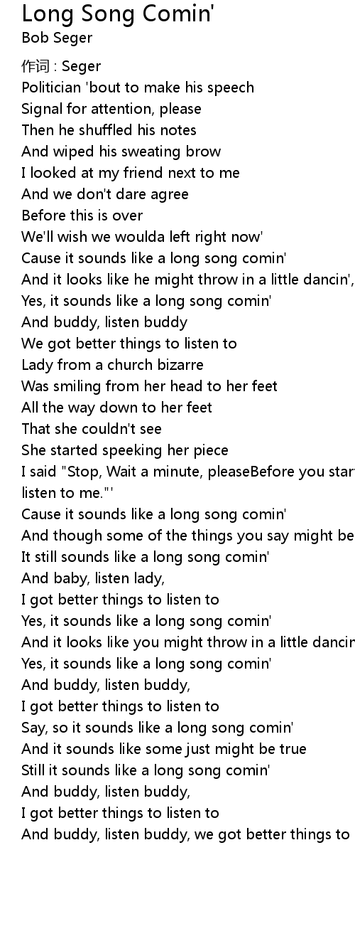 | Cause it sounds like a long song comin' | |