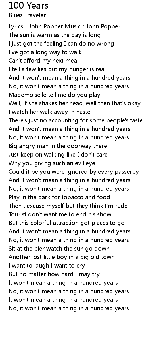 | It won' t mean a thing in a hundred years | |