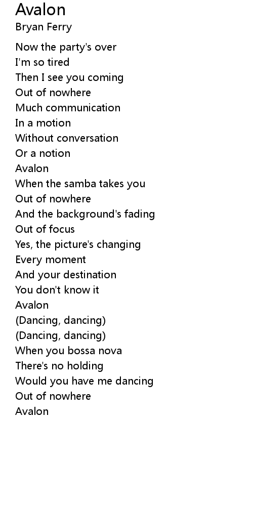 | Song | Avalon |
