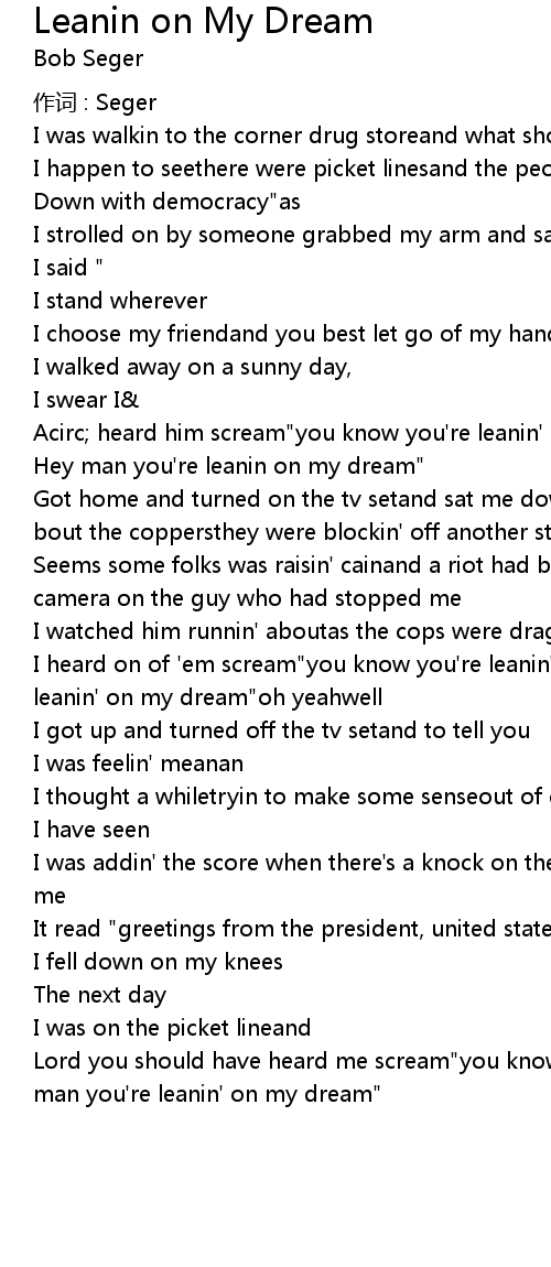 | Acirc heard him scream" you know you' re leanin' on my dream"" | |