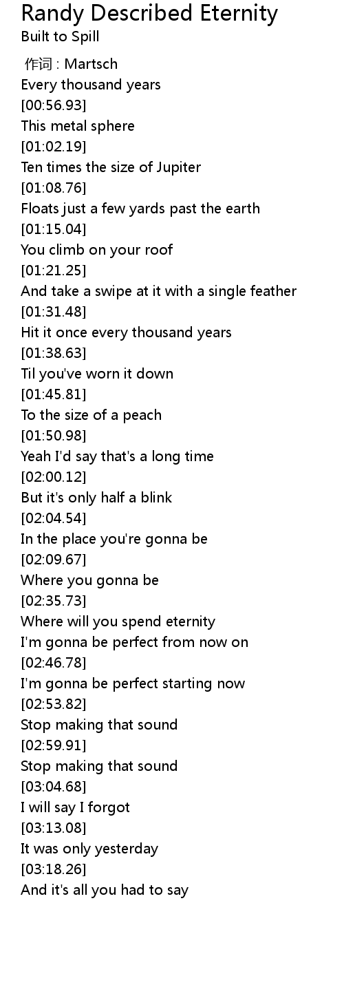 | Song | Randy Described Eternity |