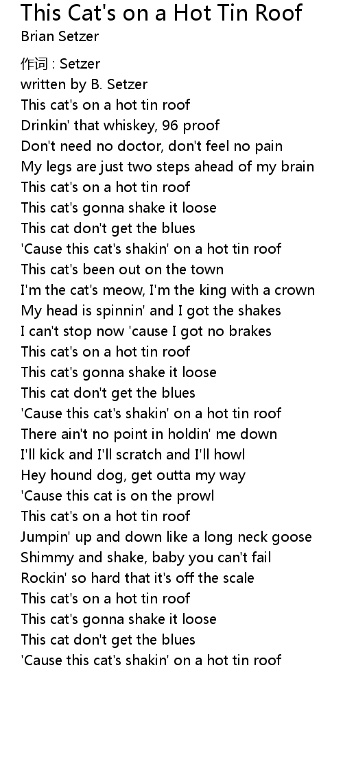 | ' Cause this cat' s shakin' on a hot tin roof | |