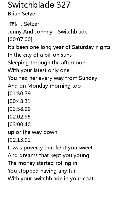 | [00:02.00] | Jenny And Johnny - Switchblade |
