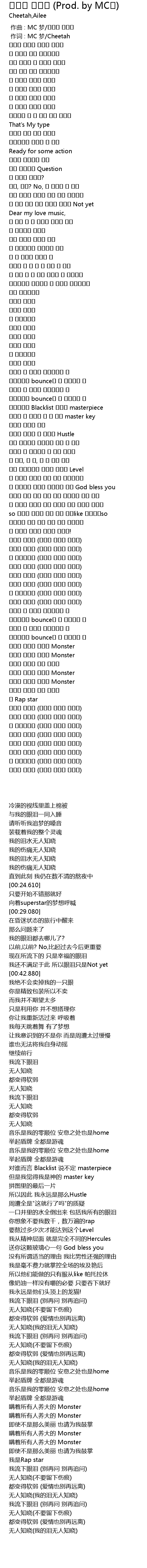 作词 : MC 梦/Cheetah |