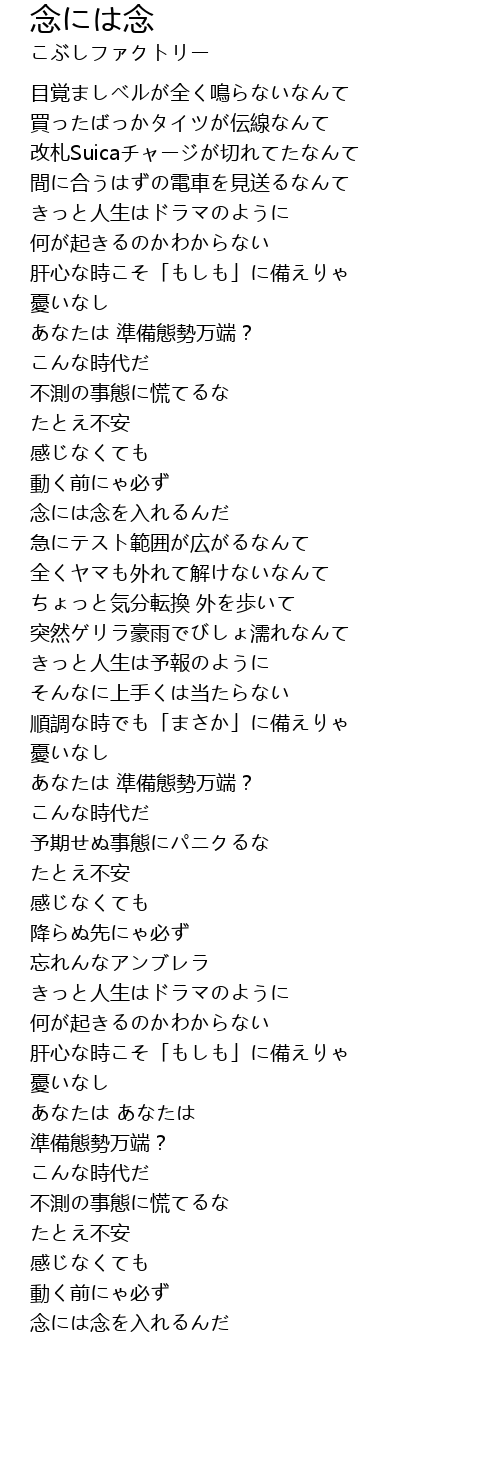 | [02:55.84] | 肝心な時こそ「もしも」に備えりゃ |