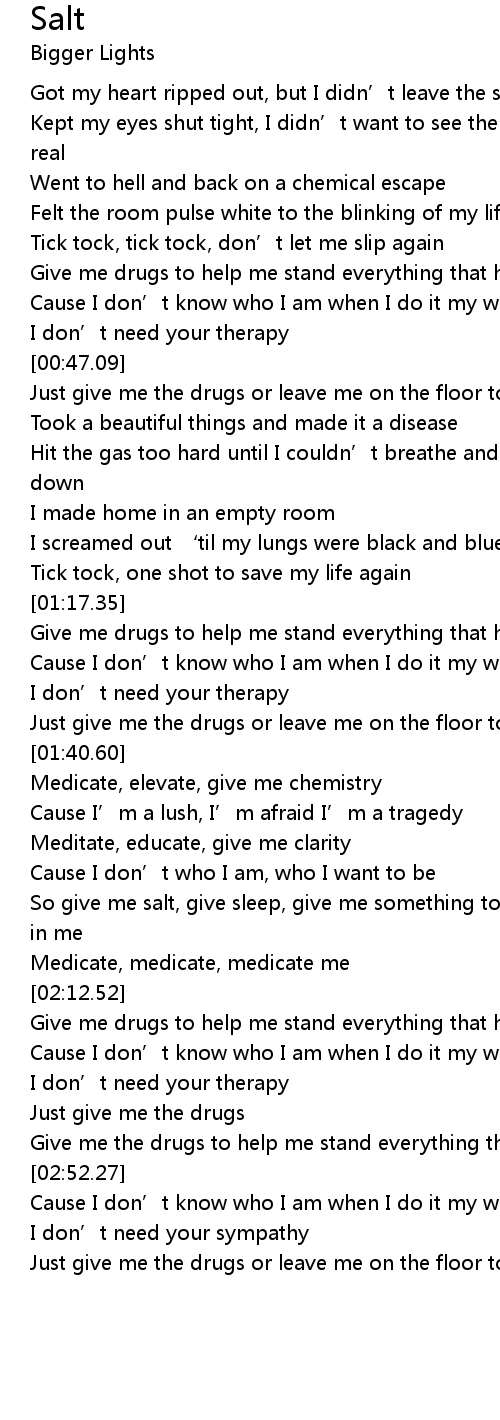 | [02:02.58] | So give me salt, give sleep, give me something to put a little faith in me |