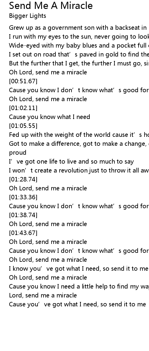 | [00:58.24] | Oh Lord, send me a miracle |