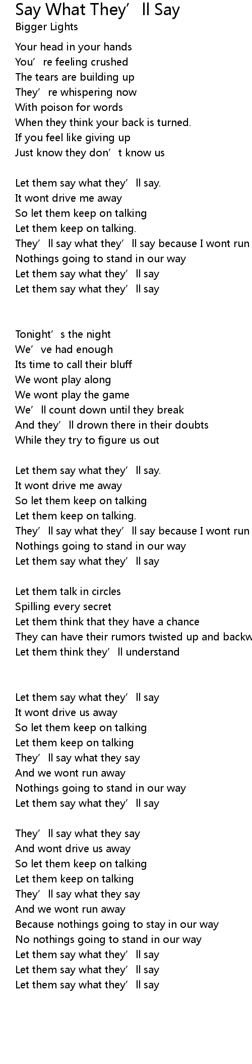 | Let them say what they' ll say | |