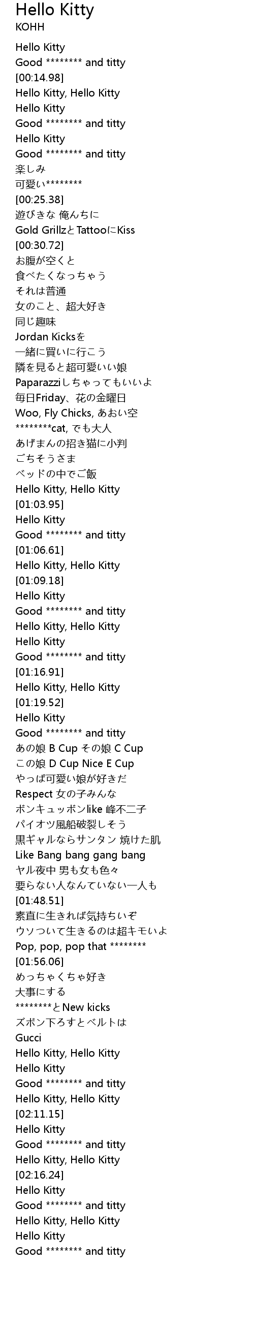 | [02:19.33] | Hello Kitty, Hello Kitty |