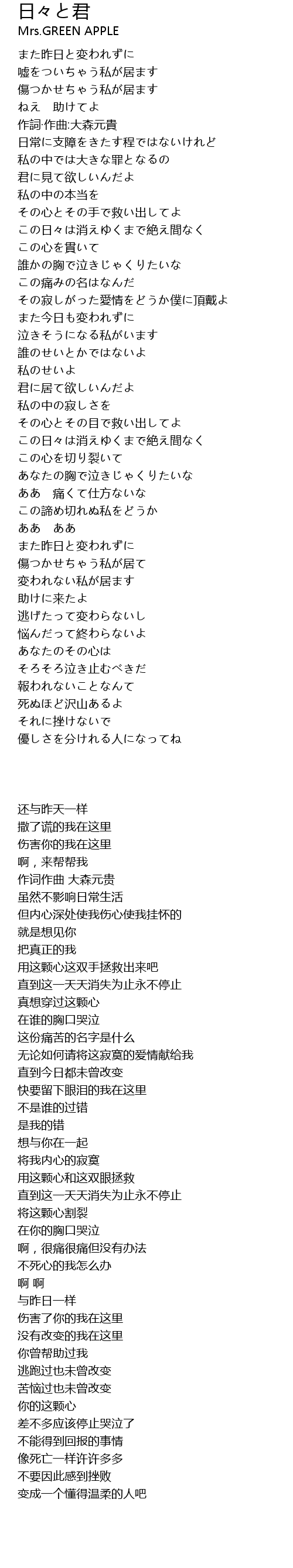 | Song | 日々と君 |