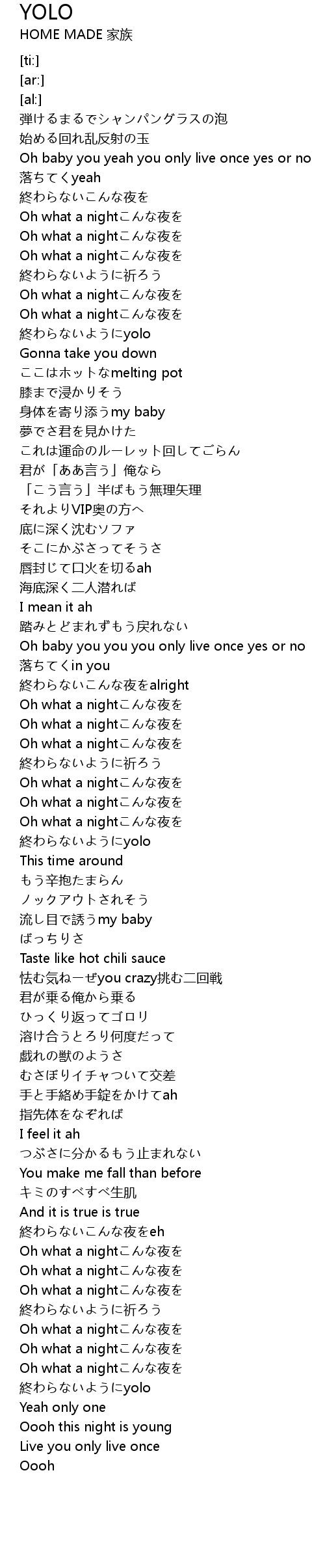 | [00:53.21] | Oh baby you yeah you only live once yes or no |