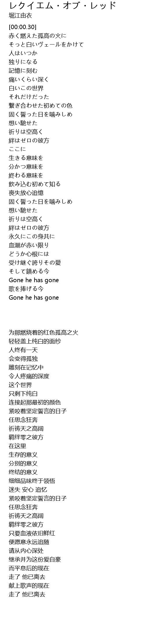 | [00:01.08] | 赤く燃えた孤高の火に |