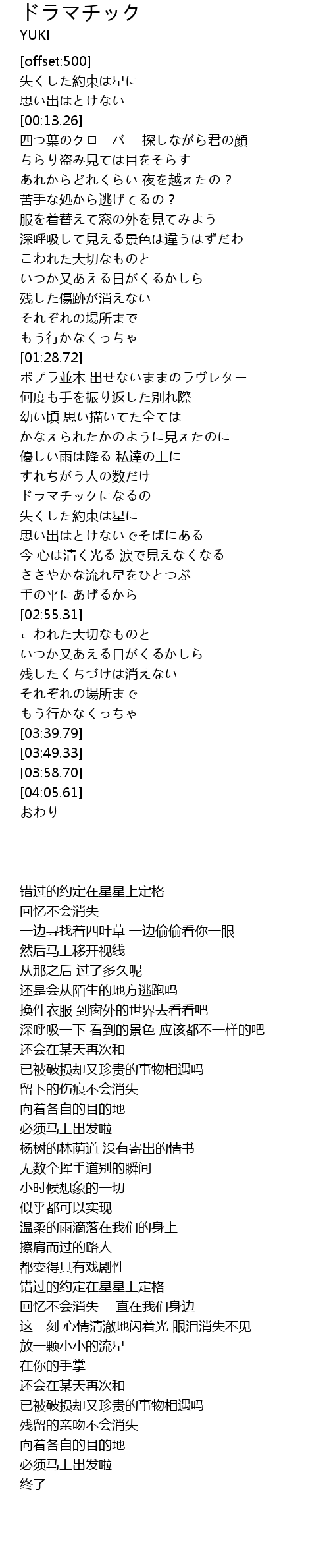 | [02:39.69] | ささやかな流れ星をひとつぶ |