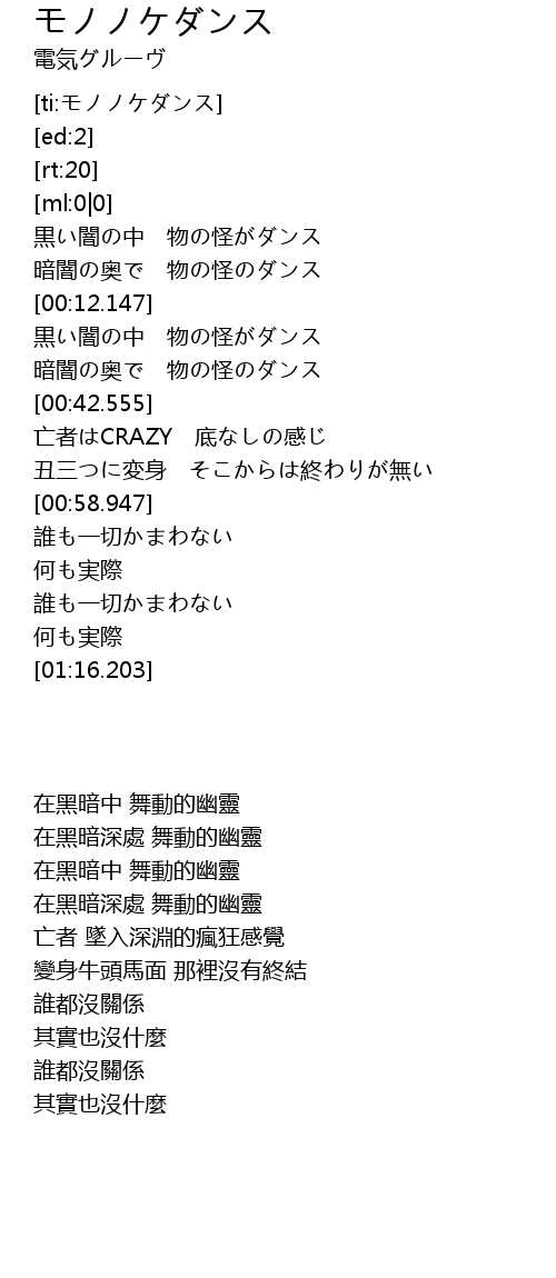 | [00:00.000] | 黒い闇の中 物の怪がダンス |