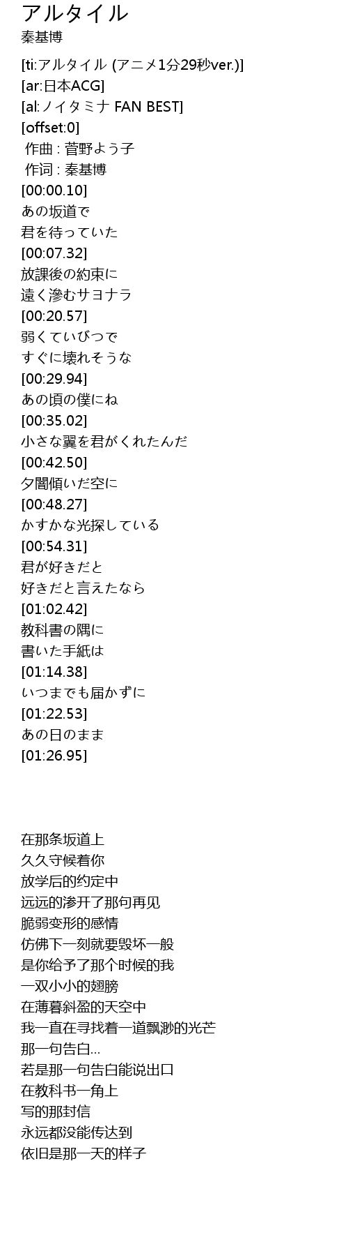 | [ti:アルタイル (アニメ1分29秒ver.)] | |
