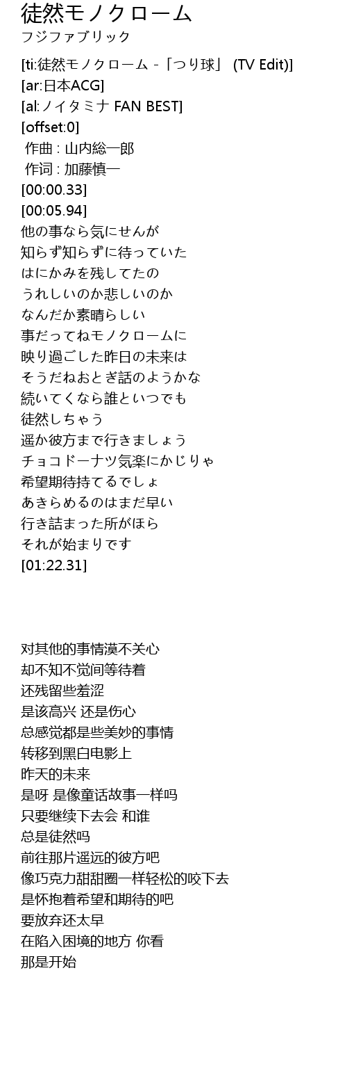 | [ti:徒然モノクローム -「つり球」 (TV Edit)] | |