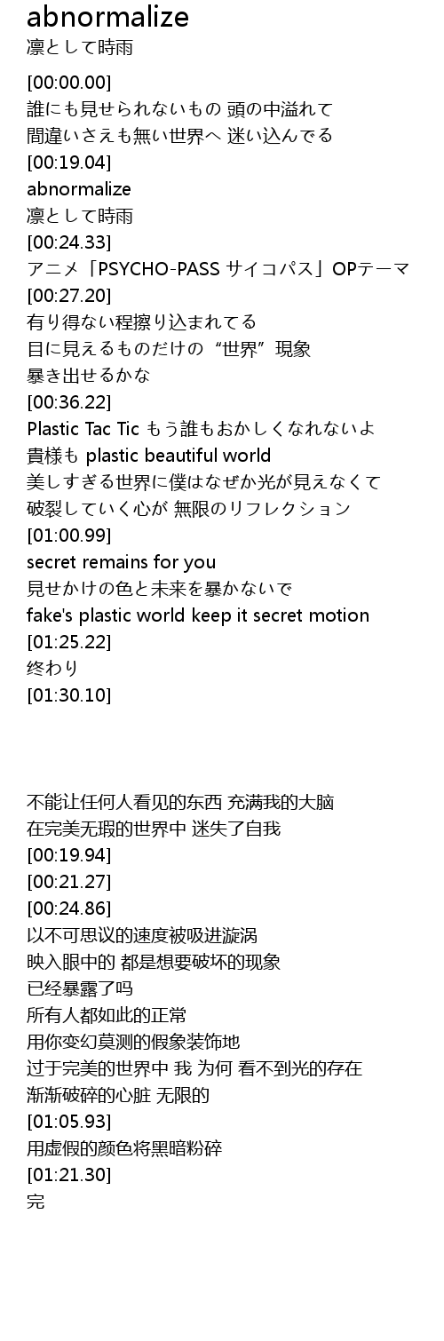 | [00:24.86] | アニメ「PSYCHO-PASS サイコパス」OPテーマ |