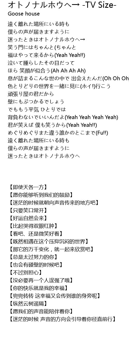| [00:54.33] | 背負わないでいいんだよ(Yeah Yeah Yeah Yeah) |