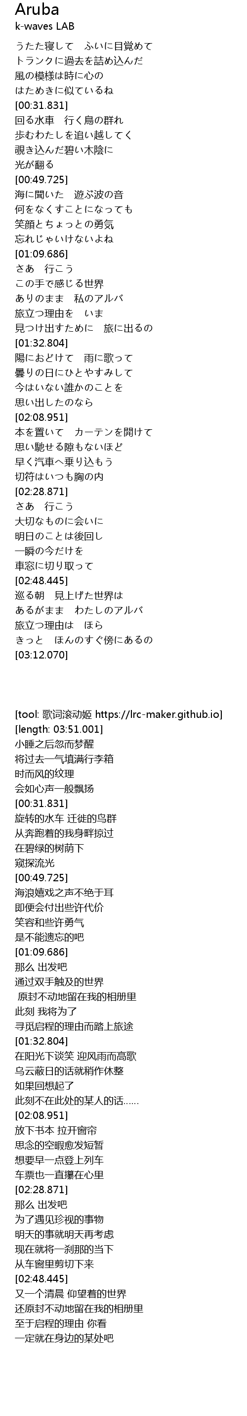 | [00:32.361] | 回る水車 行く鳥の群れ |