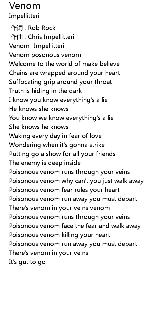 | [00:13.40] | Venom posonous venom |