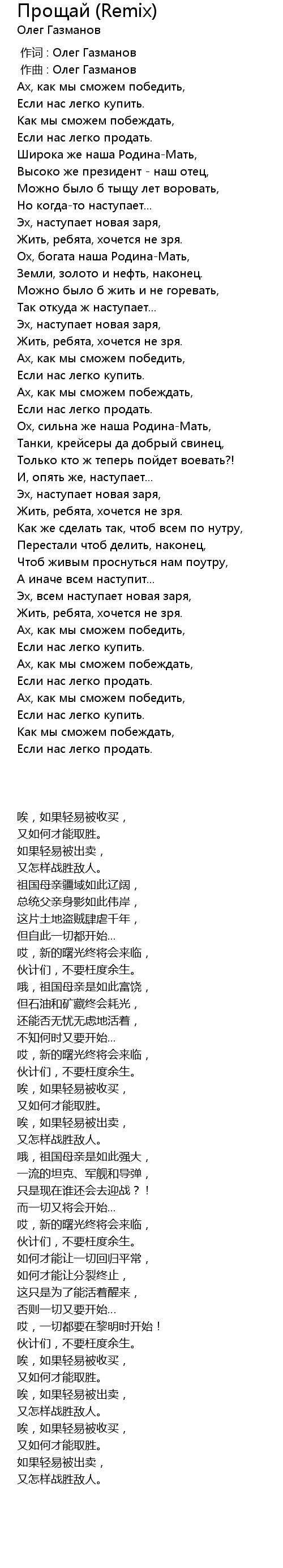 作曲 : Олег Газманов |