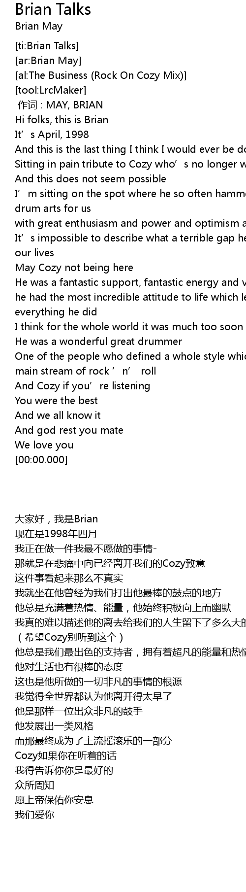 | [00:00.000] | zuò cí : MAY, BRIAN |