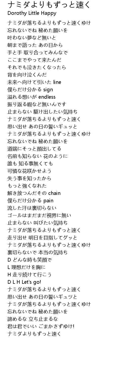 | Song | ナミダよりもずっと速く |