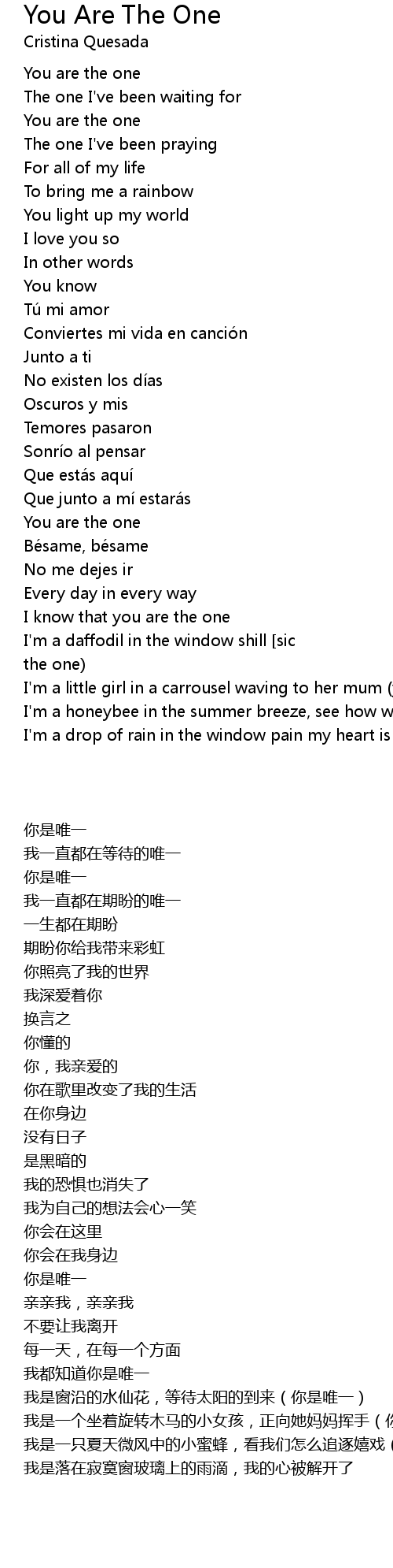 | [02:02.24] | I' m a little girl in a carrousel waving to her mum you are the one |