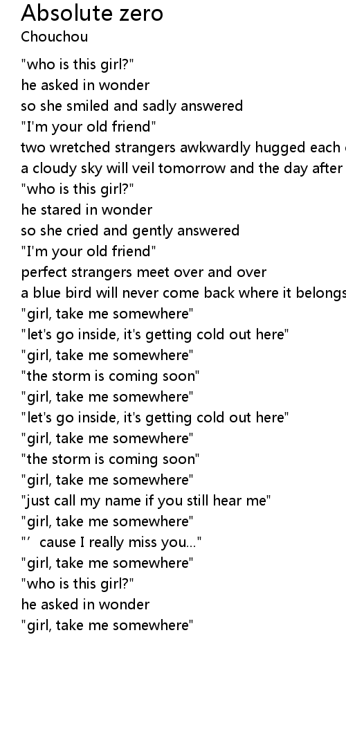 | [02:20.05] | " girl, take me somewhere" |