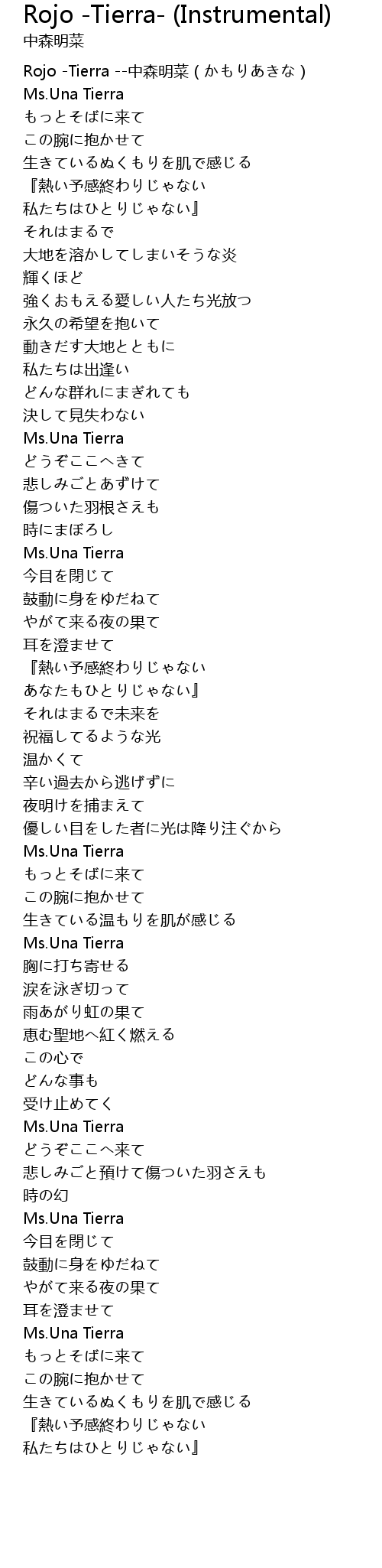 | [00:00.00] | Rojo -Tierra --中森明菜(かもりあきな) |