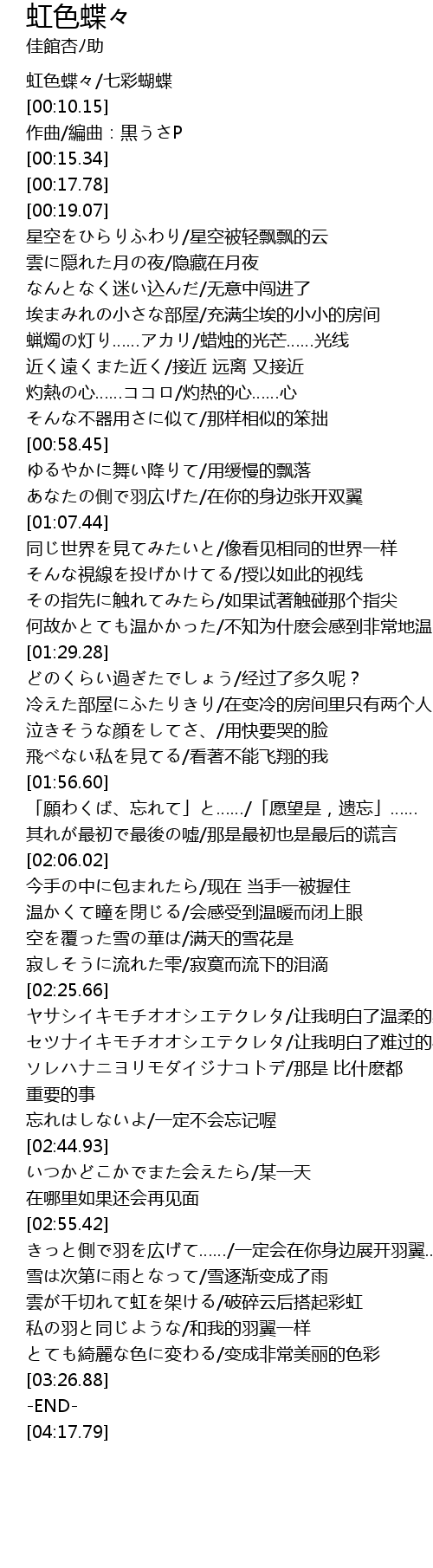 | [00:01.21] | 虹色蝶々/七彩蝴蝶 |