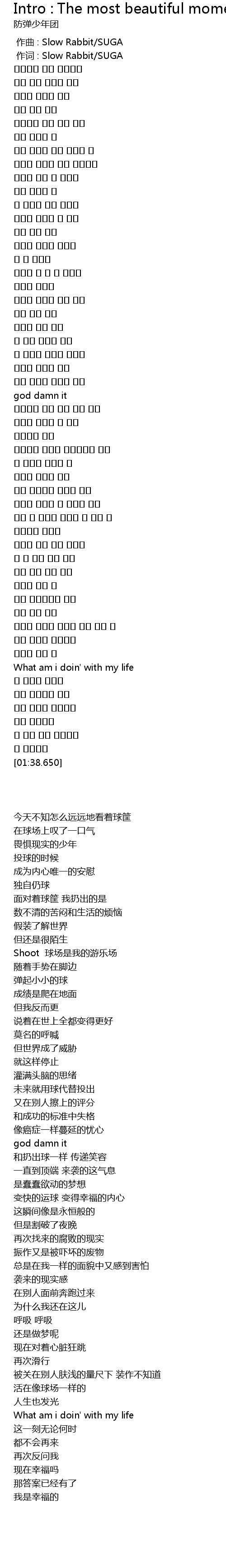 | [00:01.00] | 作词 : Slow Rabbit/SUGA |