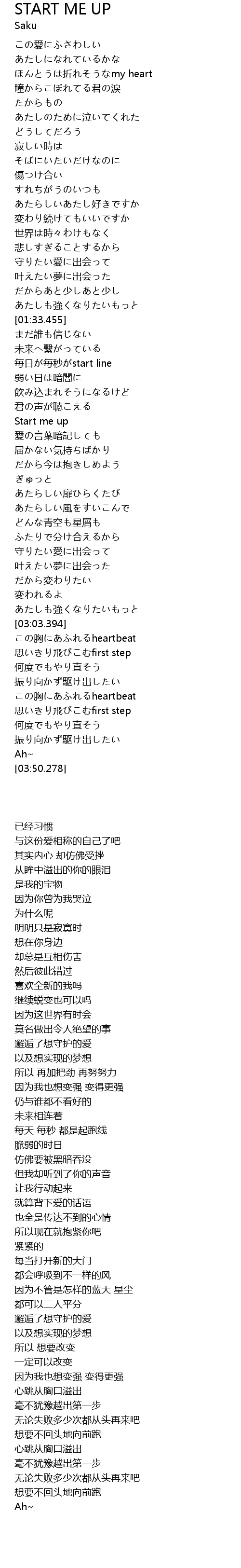 | [03:32.110] | 思いきり飛びこむfirst step |