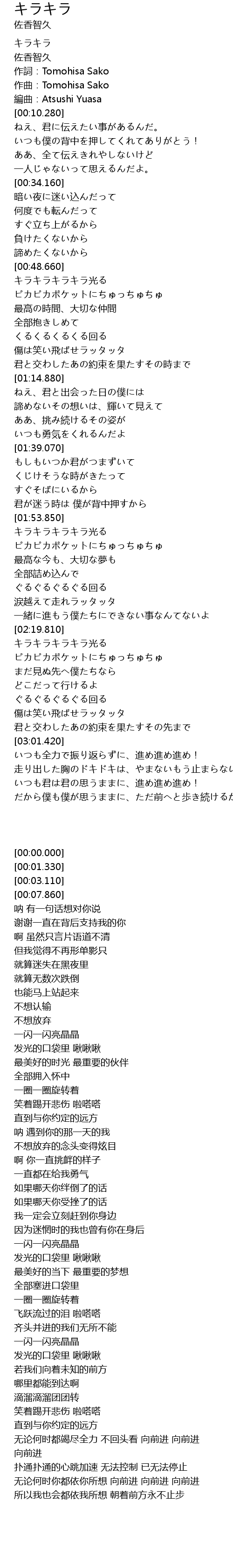 | [00:00.000] | キラキラ |