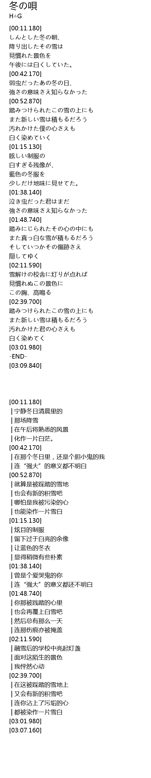 | [00:58.790] | また新しい雪は積もるだろう |