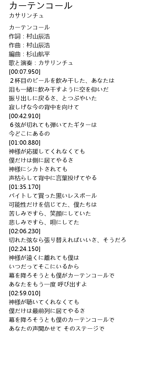 | [03:43.840] | 幕を降ろそうとも僕のカーテンコールで |
