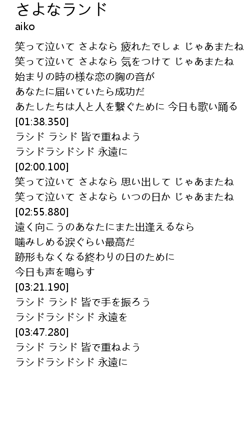| [03:22.420] | ラシド ラシド 皆で手を振ろう |