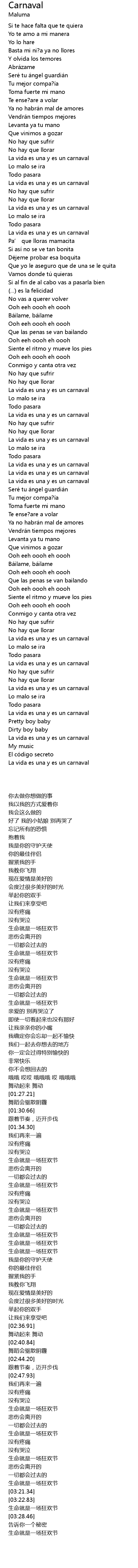 | [03:17.35] | La vida es una y es un carnaval |