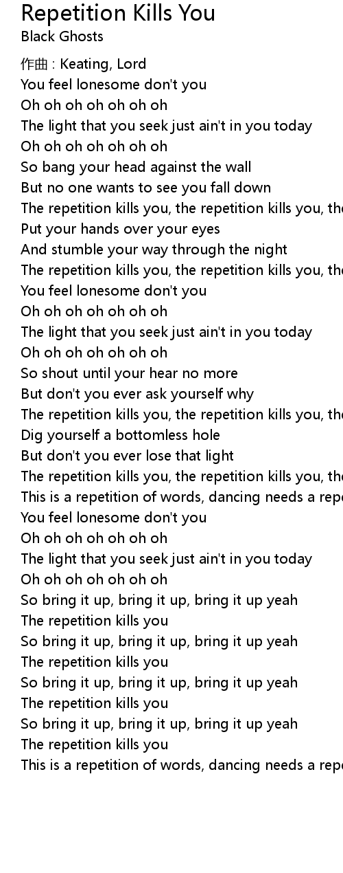 | The repetition kills you, the repetition kills you, the repetition kills you | |