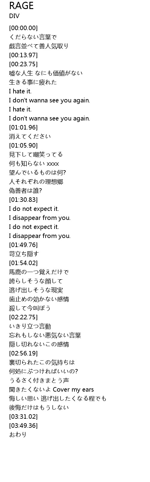 | [03:12.87] | 聞きたくないよ Cover my ears |