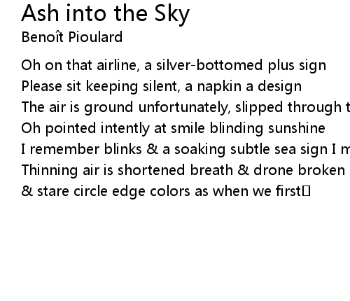 | Thinning air is shortened breath & drone broken speech lines | |