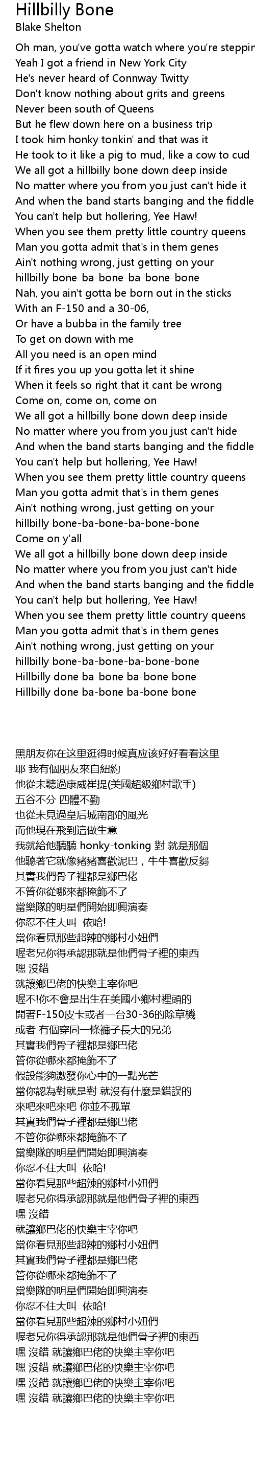 Hillbilly done ba-bone ba-bone bone |