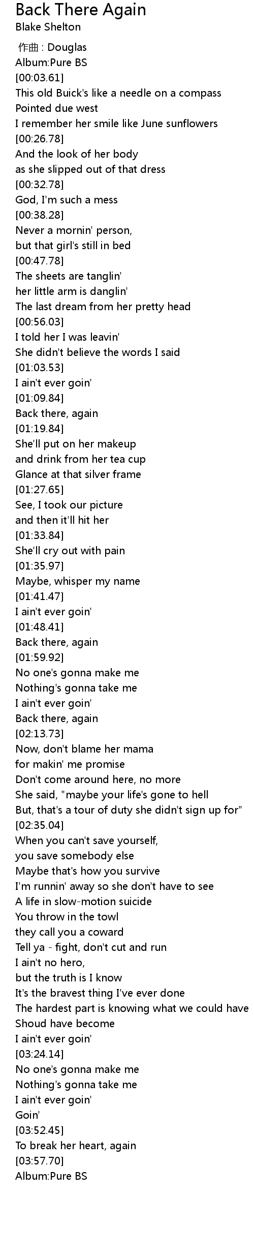 | [00:16.96] | This old Buick' s like a needle on a compass |
