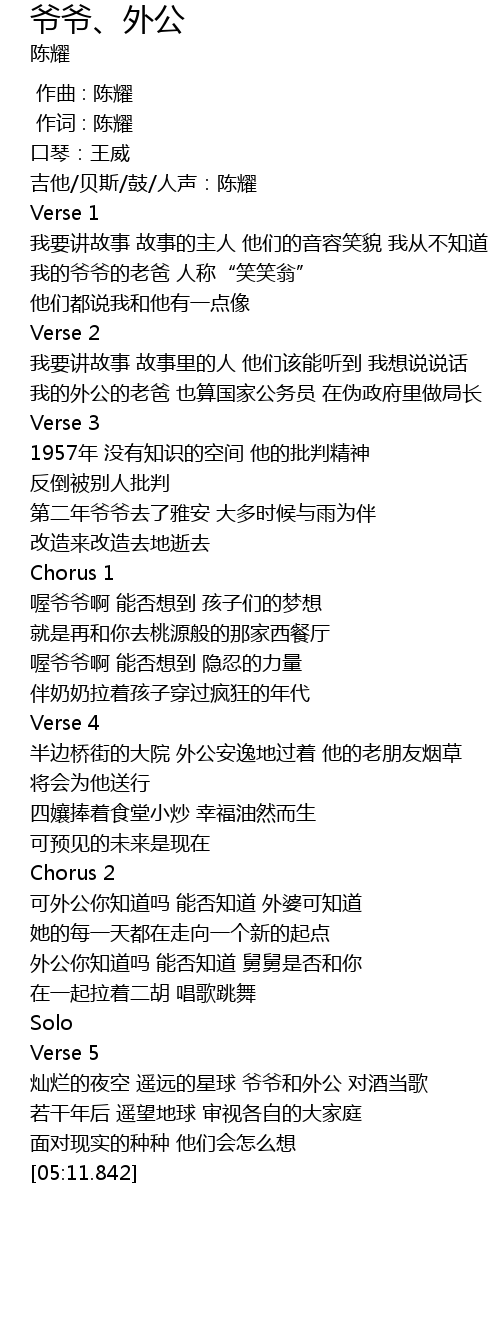 | [00:13.201] | 吉他/贝斯/鼓/人声:陈耀 |